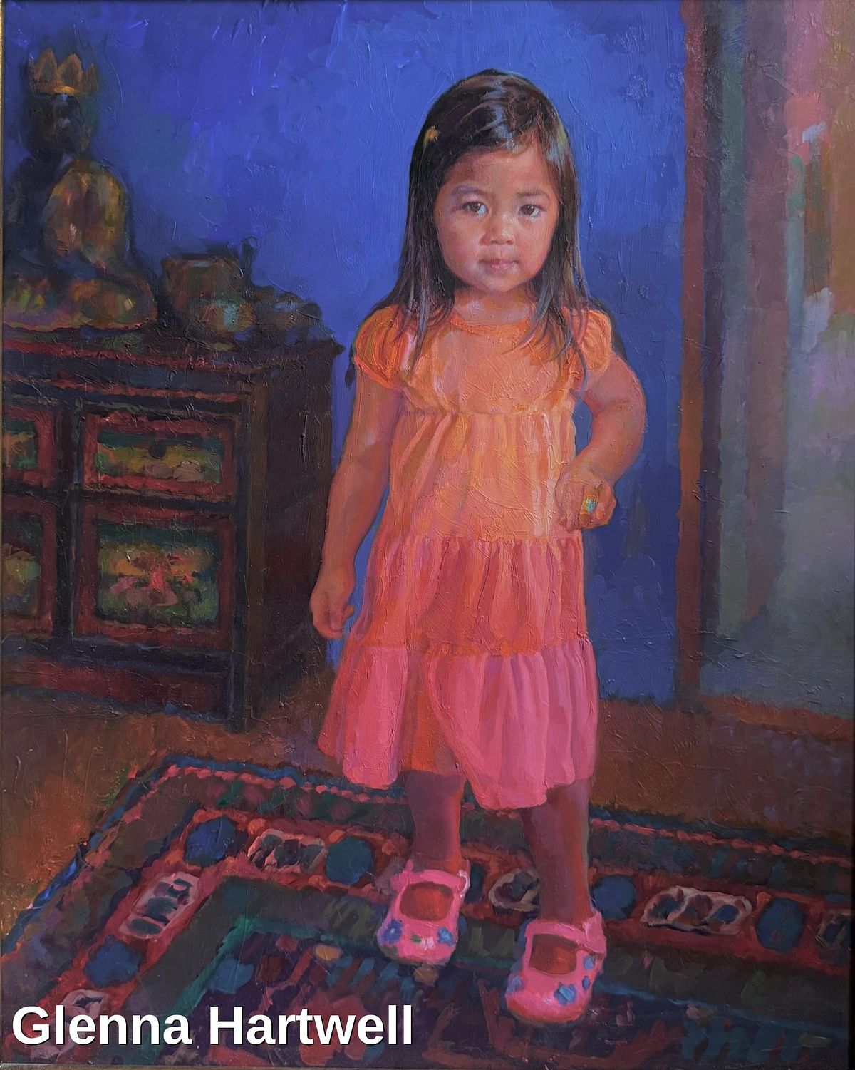 Glenna Hartwell’s career has been shaped by years of dedicated study and mentorship under renowned figures in the art world. She studied with Henry Hensche for three years. During this time, she worked as a portrait artist at The Starving Artist Studio in Provincetown, where she was mentored by master portrait artist Tom Moore. These formative experiences continue to inform her work.